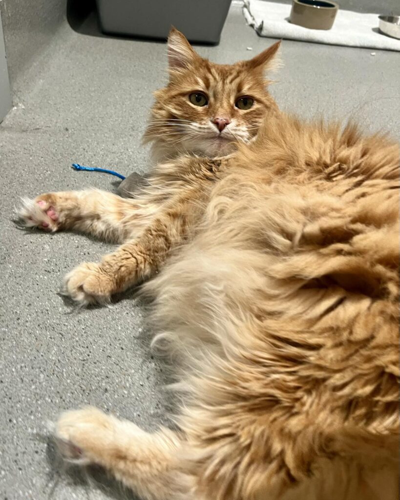 He got comfortable quickly in his new home, and is super happy and affectionate. His favorite thing to do it to sit on people any way he can, laps, arms, face, he just loves cuddling up and sleeping on top of someone. He also adores being petted for hours at a time, he won’t let you stop.